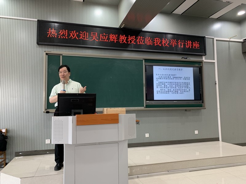 2021年6月11日,北京语言大学汉语国际教育研究院院长、博士生导师吴应辉教授莅临我院,在图书馆报告厅做了题为《美国沉浸式汉语教学现状、问题与解决方案》的讲座。我院多位教师、汉语国际教育专业学生参加了此次讲座,讲座由院长高光新主持。