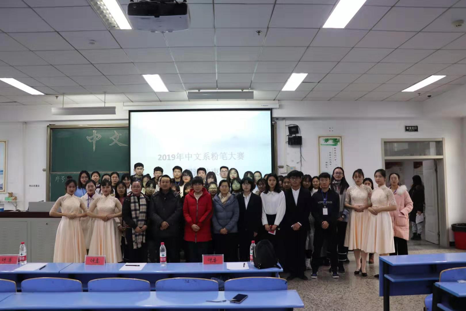 2019年12月10日下午2点,由心画书法社承办的中文系粉笔字大赛在北院文四阶梯教室成功举办。中文系党总支书记、书法教育研究所所长、心画书法社指导教师张学鹏教授,中文系书法教师许丽君、周予、张宇红老师到场,中文系18级、19级部分同学参加此次比赛。