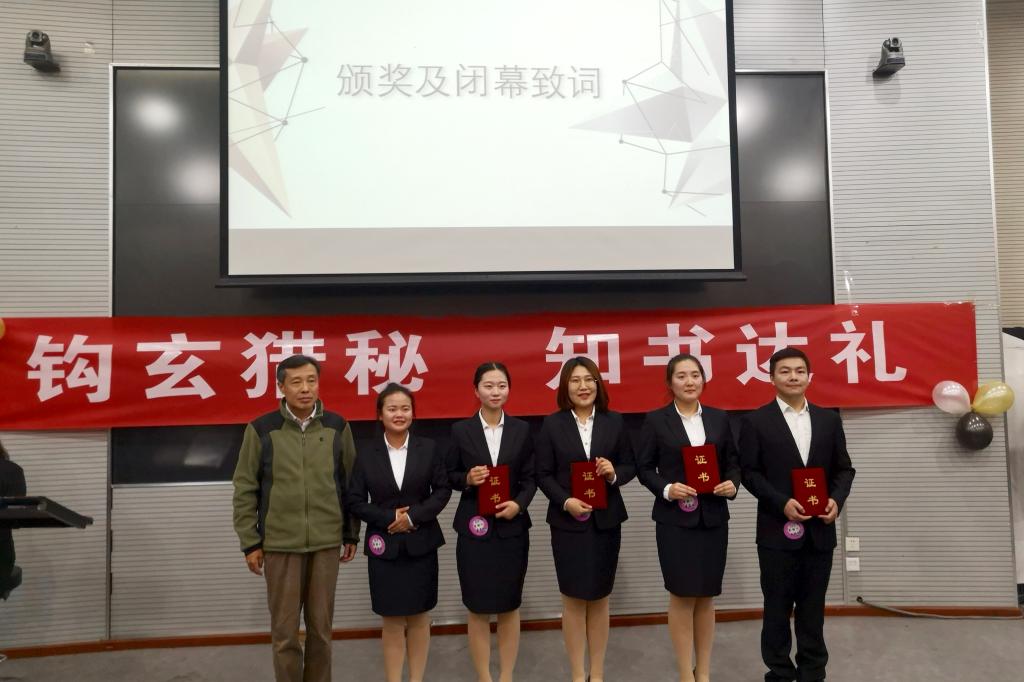 本次大赛以“钩玄猎秘,知书达理”为主题,共有7支队伍、35名选手参赛。经过创意亮相、秘书工作情景模拟、策划方案展示和百科知识竞赛四个环节的激烈比拼,由KY开元集团官网2018级文秘专接本班5名同学组成的“蜜糖队”荣获冠军。中国高等教育学会秘书学专业委员会理事长、中国人民大学胡鸿杰教授为获奖学生颁奖。