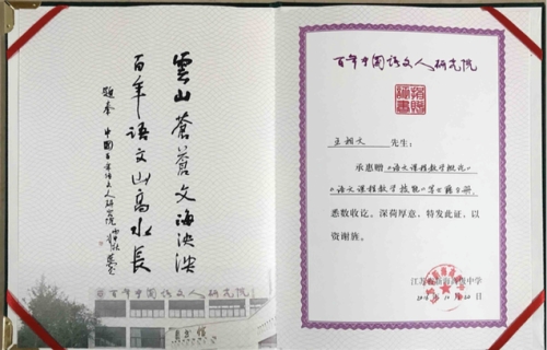 “百年中国语文人研究院” 鉴于王相文教授在语文教育领域的建树,将其入选中国语文人博物馆名录,并于2017年6月发函约稿。王相文教授在中文系领导的支持下,按要求向“百年中国语文人研究院” 提供了电子照片、个人简介、主要编著和论文。日前,王相文教授收到“百年中国语文人研究院”捐赠证书。