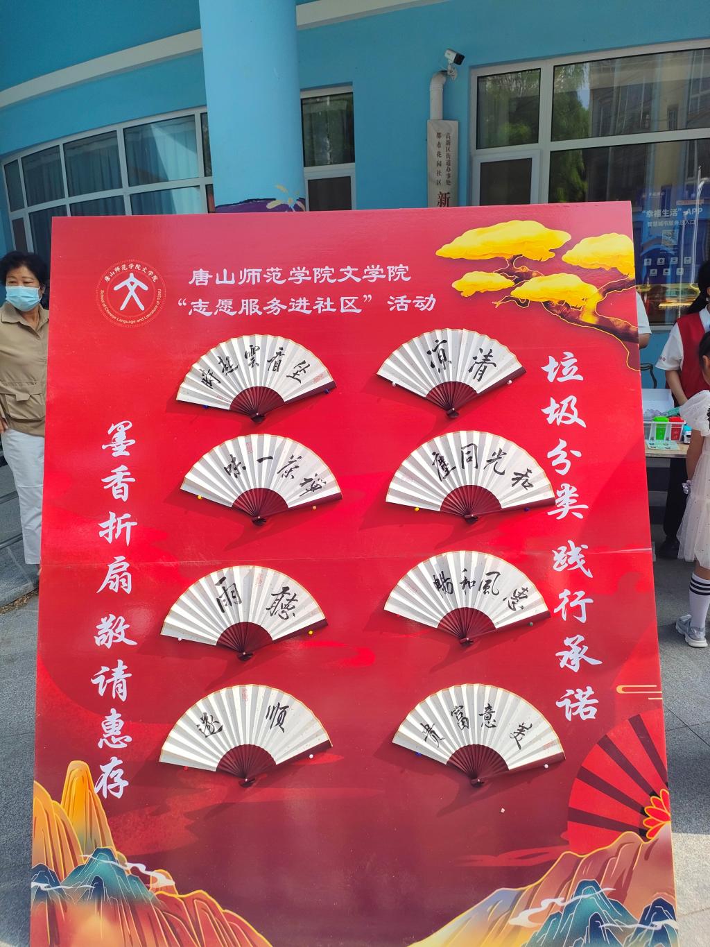 上午九点,活动开始。党员和青年志愿者们首先向在场的社区居民分发垃圾分类科普知识的宣传单,并宣讲习近平生态文明思想和习近平总书记关于做好生活垃圾分类的重要指示精神。接下来,宣读了《垃圾分类 从我做起》倡议书,积极倡导广大居民投身到垃圾分类的行动中来,争当垃圾分类的志愿者、宣传者和践行者。随后,邀请现场居民,亲笔在“垃圾分类 从我做起”的承诺签名板上签名。同时,将KY开元集团官网心画书法社同学书写的墨香折扇赠送给参与承诺签名的居民们。活动现场,气氛热烈,百余把精美折扇被送到了积极承诺的居民手中。大家表现出了极高的参与热情。本次活动还专门为社区的小朋友们设计了学习垃圾分类的游戏环节。通过自动语音识别的垃圾桶教具模型,教授并引导小朋友们正确投放不同类型的垃圾。以小朋友们喜闻乐见的游戏方式寓教于乐,从而学会垃圾分类,从小培养环保意识和良好习惯。