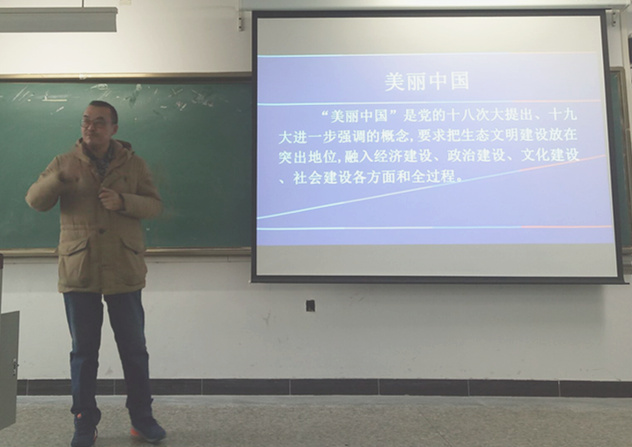 为落实校党委的部署,提高学生党员的党性修养和对党的路线、方针、政策的掌握,2018年12月11日下午,中文系在文科楼211教室组织全体学生党员上党课。党课由中文系团总支书记赵立杉老师主讲,主题为党的十九大“美丽中国”生态文明建设。赵立杉老师首先讲解了“中国早期工业化及生态危机”,分析了“习近平生态文明思想论述逻辑起点”,最后以新时代生态观“三重境界”来阐释党的十九大“美丽中国”生态文明建设理论的重要性。
