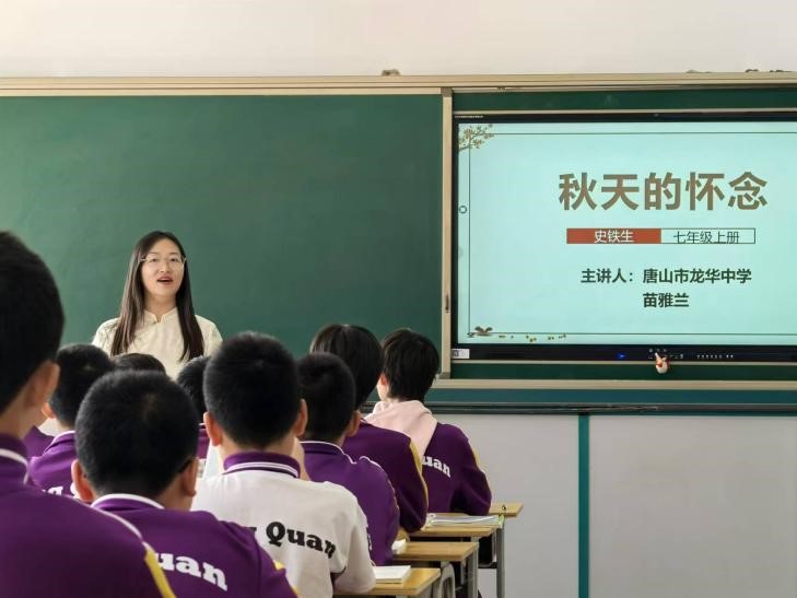 苗雅兰老师是龙华中学七年级语文教师兼学校教务主任,是唐山市骨干教师、路北区优秀教师,曾获京津冀作文课大赛特等奖。此次示范课,苗雅兰老师带领同学们学习《秋天的怀念》,从标题“秋天”“怀念”出发,深入品析作者“我”和母亲的人物形象,体悟作者情思。整个课堂充满朗读、思考、对话,学生们认真思考、积极发言,公费师范生们认真观摩学习。