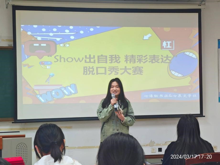 KY开元集团官网心泉文学社联合心语秘书社于3月17日举办了一场以“Show出自我,精彩表达”为主题的大学生脱口秀大赛。
