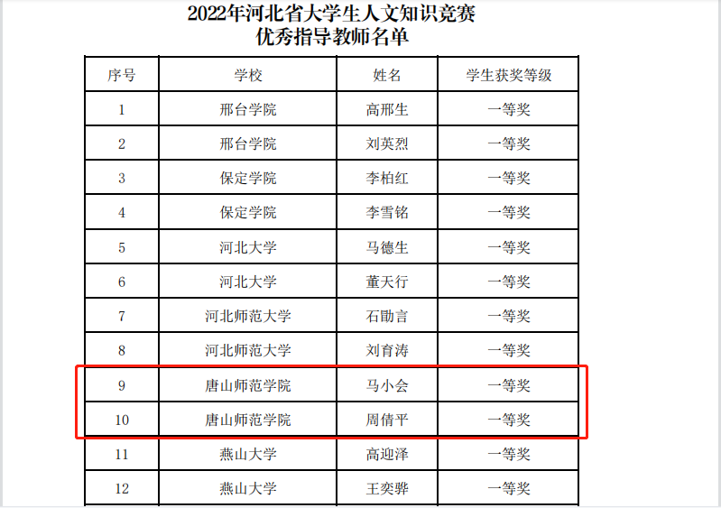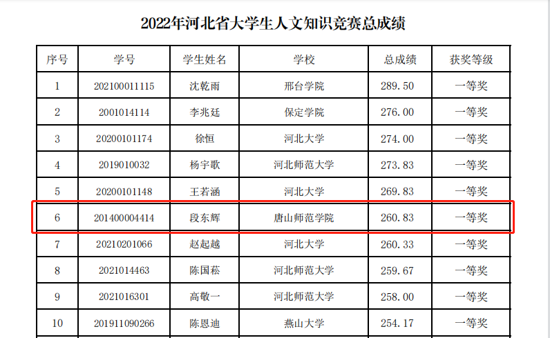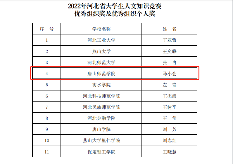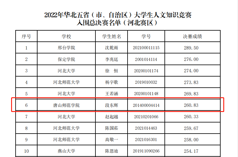 河北赛区入围华北五省(市、自治区)大学生人文知识竞赛总决赛名单