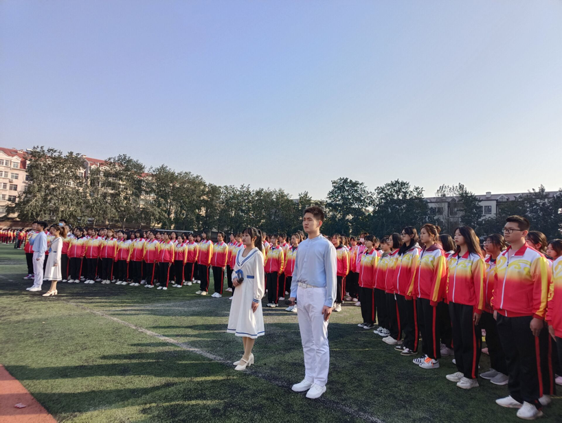 KY开元集团官网于2021年10月18日在学院路校区举行了升旗仪式。党总支书记马广宽、副院长陈伟莲、党总支副书记鲁芳、学工办主任曹丽娜、团总支书记王文娟,以及学院路校区2021级全体新生参加了此次活动。