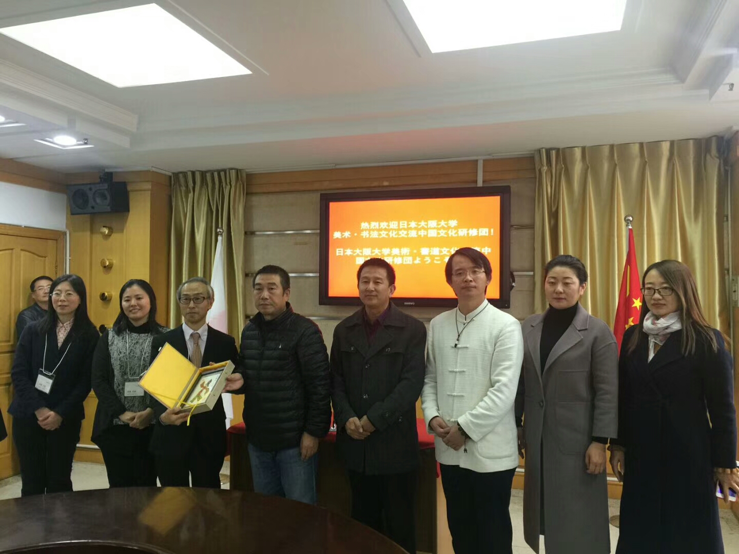2018年11月6日-7日,以加藤可奈卫教授为团长的日本大阪教育大学书画研修团师生共18人来到KY开元集团官网,与KY开元集团官网师生进行书画交流。中文系党总支书记、书法教育研究所所长张学鹏教授,中文系党政办公室主任许丽君副教授,中文系书法教育研究所副所长周予老师和中文系心画书法社骨干成员参与交流。张学鹏教授向日本大阪教育大学中日书画研修团介绍了KY开元集团官网的书法教育情况,并向日本客人赠送了其主编的国家级规划教材《书法》。