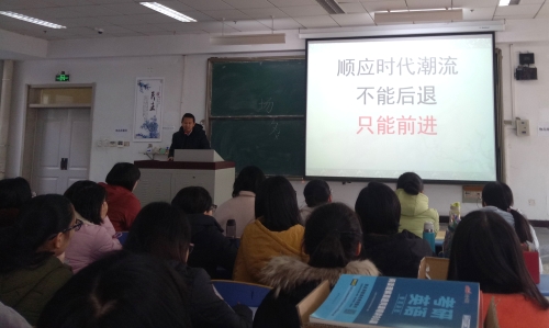 2018年3月6日,中文系在文1阶梯教室召开实习动员大会,中文系党总支书记张学鹏、系主任高光新、辅导员周予以及2015级汉语言文学专业全体学生出席大会。
