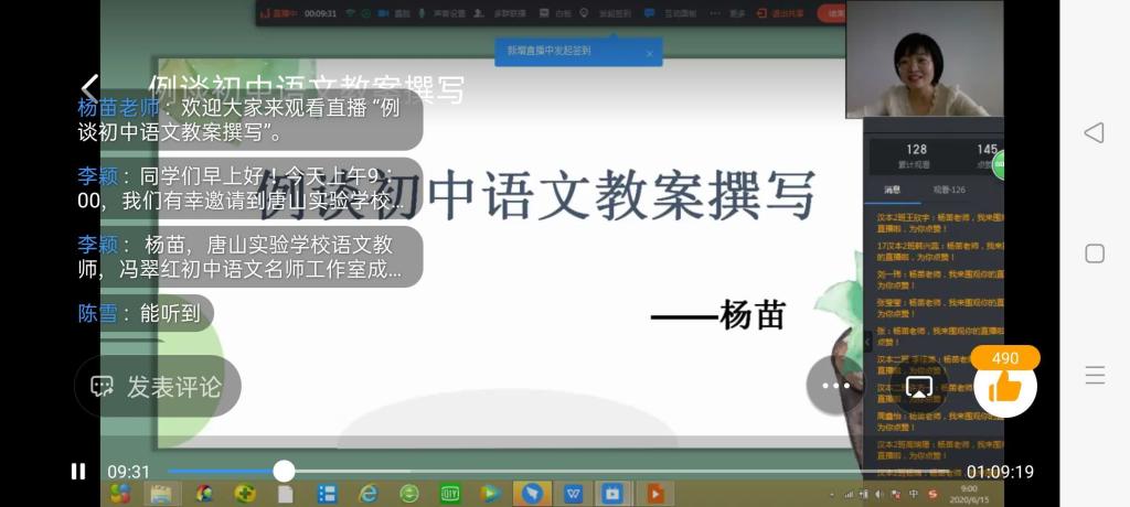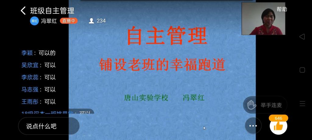 6月15日上午,KY开元集团官网还特别邀请了唐山实验学校初中部语文教师杨苗做了题为《初中语文教案撰写例谈》的讲座。讲座采用钉钉直播的方式,参与教育实习活动的120余名师生相聚云端,就教案编写的基本要求、基本体例和注意事项等问题进行了交流和讨论。杨苗老师对同学们的提问进行了答疑,直播间气氛活跃。同日下午,唐山实验学校初中部冯翠红校长为参与教育实习的师生作了题为《自主管理——为班主任搭建幸福跑道》的讲座。在钉钉直播的过程中,冯翠红老师结合自己多年的班主任管理经验,围绕“做一名幸福的班主任”、“三阶段”班级自主管理、开展班级教育活动的实践思考等问题进行了精彩讲解,并和同学们展开了积极互动交流,受到同学们的热烈欢迎。