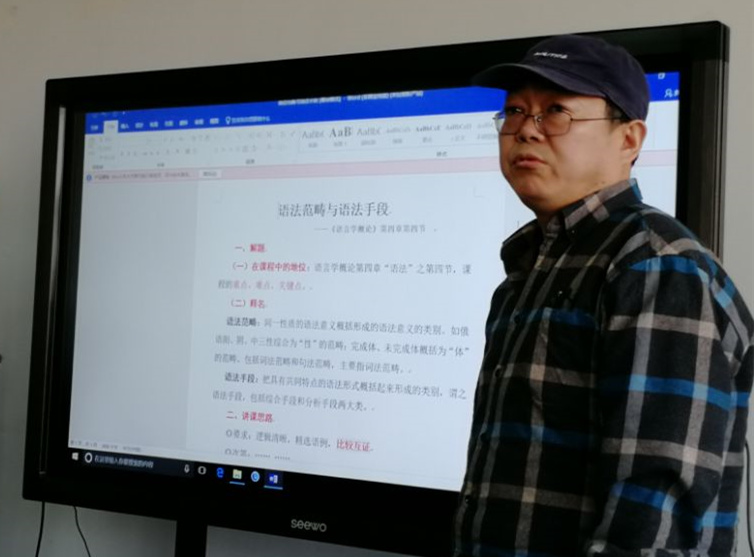 2018年10月16日下午,中文系举办了第三场迎评估观摩课活动。本次活动由中文系副主任陈伟莲主持,中文系全体教师参加。本次观摩课由语言学教研室教师、语言学双博士后李永教授主讲,题目为《语法范畴和语法手段》。李教授开门见山地阐释了这两个语法学重要术语,接着从语言类型学的角度对“普通话—方言—古汉语”比较以及汉外语言的比较方面进行深入讲解。李教授认为,在讲授语言学课程时,需要注意逻辑清晰,精选例证和比较互证。李永教授深厚的语言学积淀、丰富的教学经验以及严密的理性思维,赢得了全体教师的掌声。