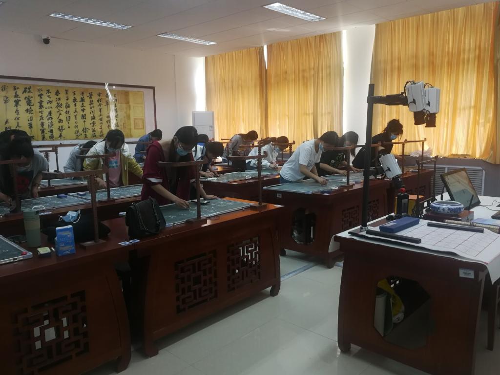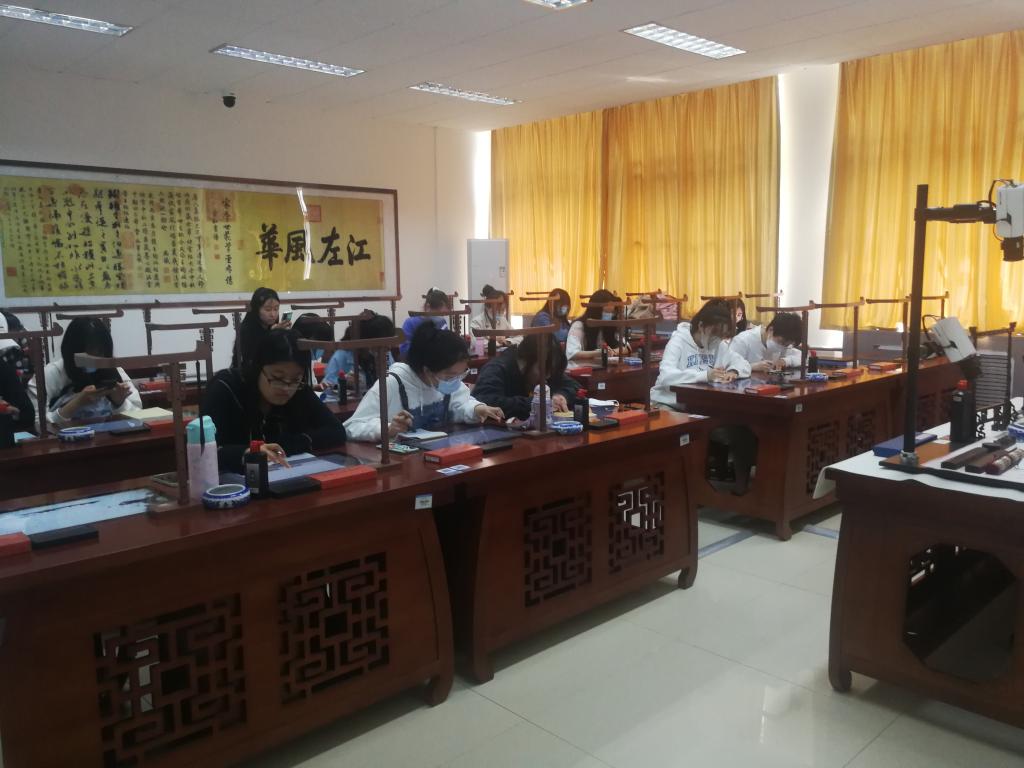 在普通话实训室,同学们从理论到实践,通过上机训练进一步了解普通话水平测试评分标准,从单音节词、双音节词、短文阅读、命题说话四个部分开展了针对性训练。在“三字”实训室,各位同学运用硬笔、粉笔、毛笔,按照汉字的笔画、笔顺和间架结构,认真练习书写规范的汉字。