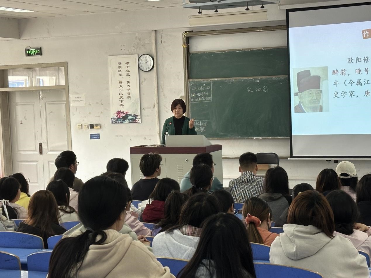 为了给师范生提供直观的教学范式,缩短理论与实践的鸿沟,KY开元集团官网于2025年4月8日,在北院第八阶梯教室举办了“名师讲堂”活动。参加本次活动的有唐山市第十二中学的王茜校长、马宁老师,KY开元集团官网陈伟莲院长、教师素质教研室赵萍老师和王瑜老师以及2023级汉语言文学专业的全体学生。
